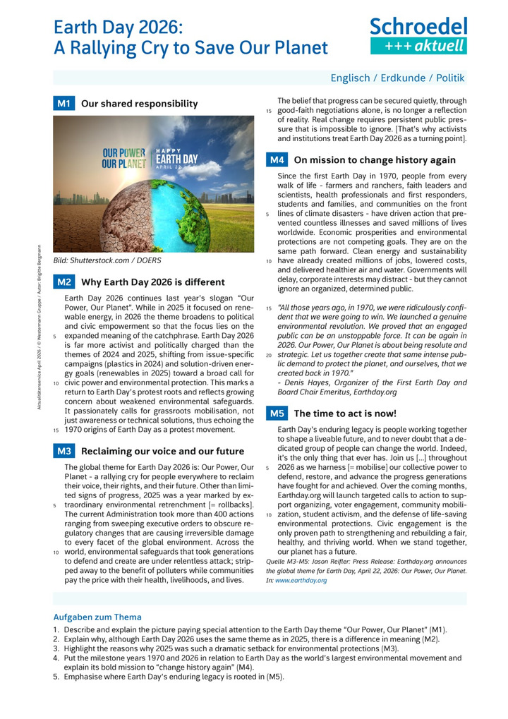 Earth Day 2026: A Rallying Cry to Save Our Planet - Englisch / Erdkunde / Politik ab Klasse 10