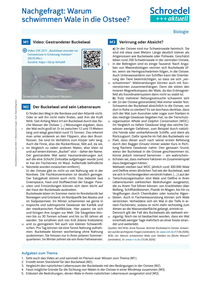 Nachgefragt: Warum schwimmen Wale in die Ostsee? - Biologie ab Klasse 8