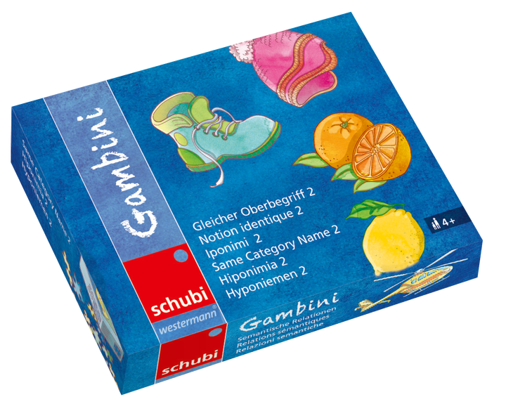 Inhalt: 4 Spiele mit insgesamt 48 farbigen Bildkarten (12 Oberbegriffe mit je 2 Kartenpaaren) und Anleitung mit Anregungen.