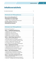 Die fünf Kapitel des Arbeitsbuchs haben jeweils eigene inhaltliche wie methodische Schwerpunkte. Ihr Kern sind die fünf in Kapitel 2 vorgestellten Methoden des Philosophierens, die als Säulen des Philosophierens bezeichnet werden.