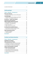 Das Arbeitsbuch für den Ethikunterricht DenkArt Material besteht aus vier großen Themenblöcken. Der erste Teil Anthropologie (Kapitel 1 und 2) beschäftigt sich zunächst mit dem, was den Menschen als Menschen ausmacht. In einem weiteren Kapitel wird der Aspekt „Willensfreiheit“ als mögliche besondere menschliche Eigenschaft näher beleuchtet. Der zweite Teil Ethik (Kapitel 3, 4, und 5) beginnt mit einer Einführung in die Grundlagen der Ethik, hier werden Grundbegriffe geklärt und es wird in das moralische Argumentieren ein-geführt. Im Anschluss daran werden ethische Grundpositionen erarbeitet, bevor abschließend ausgewählte Probleme der Angewandten Ethik ausführlich untersucht werden. Der dritte Teil Staatsphilosophie (Kapitel 6) beginnt mit einer Einführung in die Grundlagen der Staatsphilosophie. Im Anschluss daran werden zunächst Probleme der Gerechtigkeit im engeren Sinn und dann weitere Fragen der politischen Ethik untersucht. Der vierte Teil Glück, Sinn und Religion (Kapitel 7 und 8) stellt zunächst antike Positionen zum Glück vor und diskutiert diese vor dem Hintergrund gegenwärtiger Überlegungen. Daran schließen sich Fragen nach Sinn und eine ausführliche Auseinandersetzung mit dem Phänomen Reli-