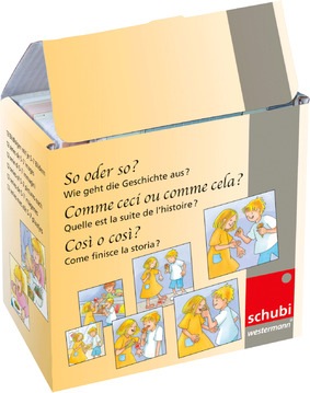 Inhalt: 12 farbige Geschichten mit je 5–7 Bildern, insgesamt 72 Karten, Format 9 x 9 cm. Mit Anleitung.