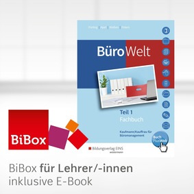 Die BiBox, die Bildungsbox ist das umfassende Digitalpaket zu Ihrem Lehrwerk >>BüroWelt – Teil 1 (978-3-427-94615-1, 3. Auflage 2018)<<! Diese BiBox für Lehrerinnen und Lehrer enthält das Digitale Schulbuch / ebook Ihres Lehrwerks von westermann sowie Unterrichtsmaterial für Lehrer und Lehrerinnen für Ihre optimale Unterrichtsvorbereitung.