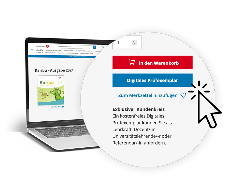 Laden Sie sich Ihr kostenloses digitales Lesebuch einfach herunter und entdecken Sie die Vorteile für Ihren Unterricht. Keine schweren Schultaschen mehr und trotzdem können alle Kinder zu Hause und in der Schule lesen. Die digitalen Hörtexte und Aufgaben sind im digitalen Schulbuch enthalten. Ihr digitales Prüfstück erhalten Sie mit einem Klick auf auf den blauen Button beim Lesebuch im Karibu-Webshop.