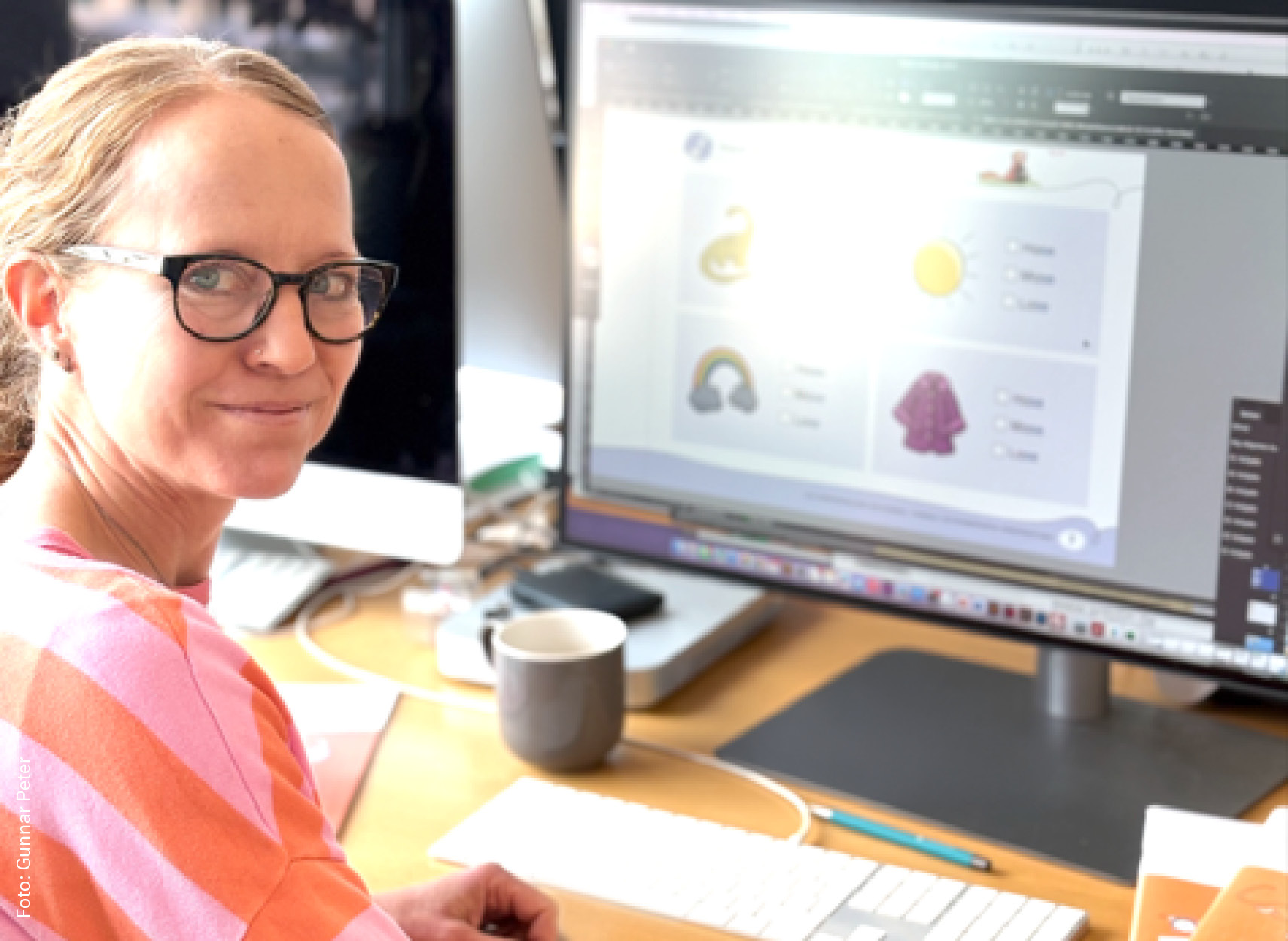 Damit beim Cover und beim Innenlayout alle Elemente vernünftig zusammenfinden, braucht es ein gutes Auge für die Gestaltung. Das bringt unsere Designerin Silke Schwarz mit. Mit viel Liebe zum Detail sorgt sie dafür, dass ein ästhetischer Gesamteindruck entsteht. Darüber hinaus achtet sie aber auch darauf, dass die Seiten gut aufgebaut sind, damit die Kinder diese problemlos bearbeiten können.