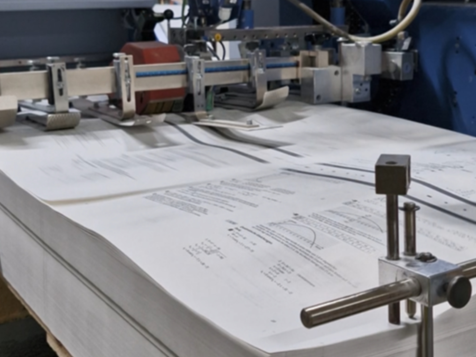 Die Seiten werden dabei in einer ganz bestimmten Reihenfolge hinterlegt, denn sind die Seiten auf den Druckbogen gedruckt, geht es damit zur Falzmaschine. Die faltet den Bogen einige Male. Wenn die Seiten richtig angelegt wurden, sind sie im Anschluss in der richtigen Reihenfolge.