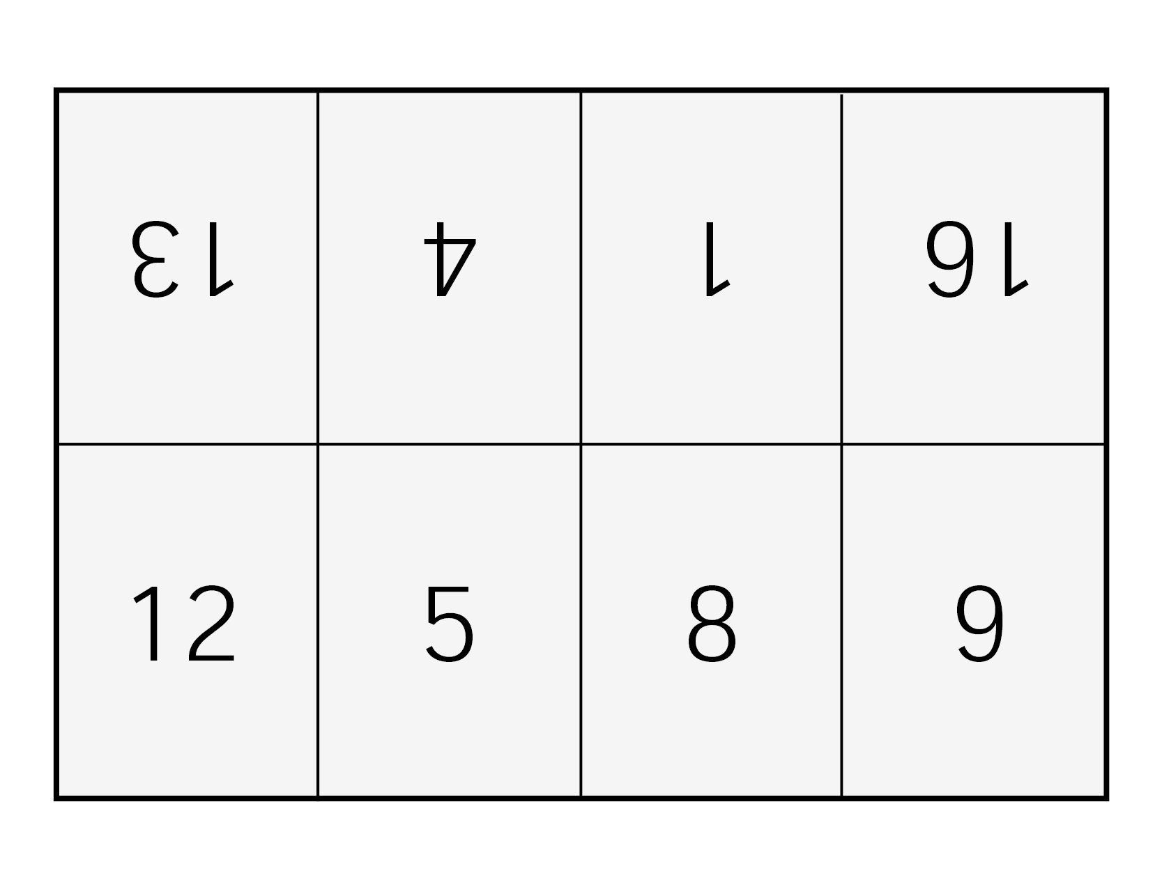 Nachfolgend ein Beispiel dafür, wie 16 DIN A4-Seiten auf einem Druckbogen (ca. 84,0 cm x 59,4 cm), Vorder- und Rückseite, für den Druck einer Klammerheftung platziert werden. Es ist zu beachten, dass die Anordnung sich je nach Bindeart unterscheidet!