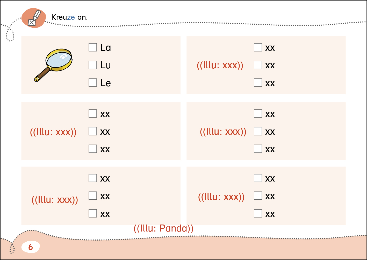 Wenn auf den Arbeitsheft-Seiten Chaos herrscht, verlieren die Kinder beim Bearbeiten den Durchblick. Ein strukturierter Aufbau und ruhige Seiten tragen stark dazu bei, dass die Auseinandersetzung mit den Aufgaben leichtfällt. Das hat schlussendlich wiederum eine Auswirkung auf Lesefreude und Motivation. Daher ist das Innenlayout so wichtig.