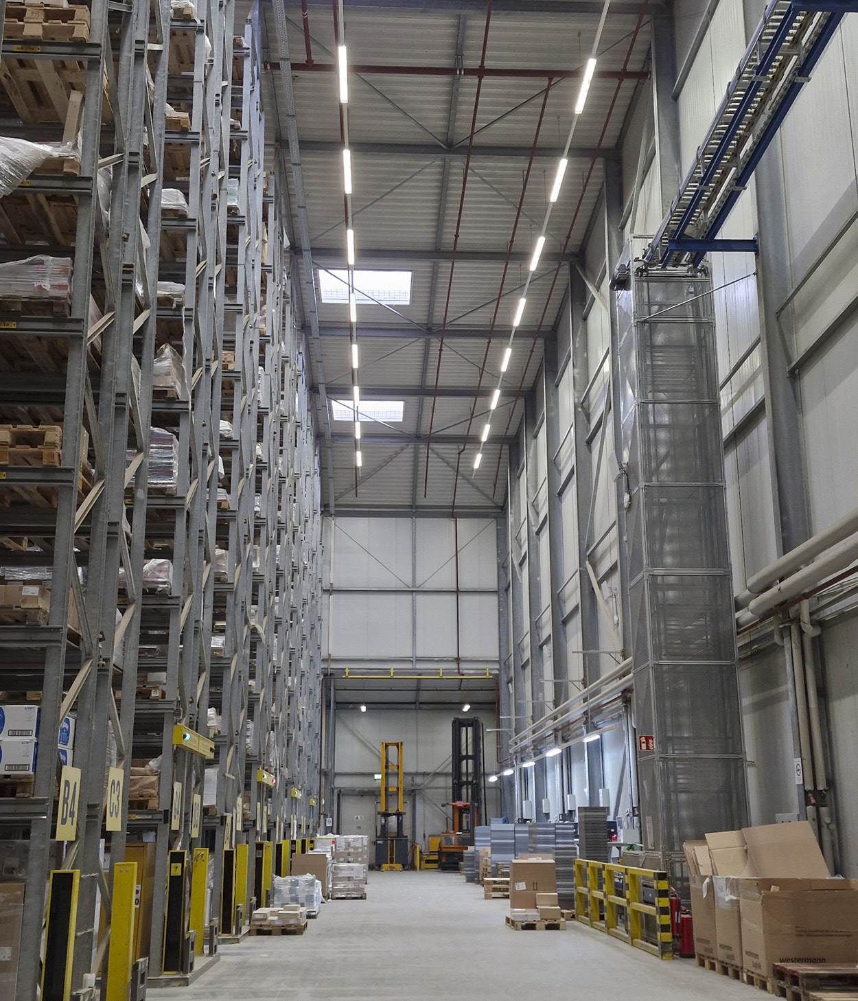 Die Materialien sind in Regalen eingelagert.