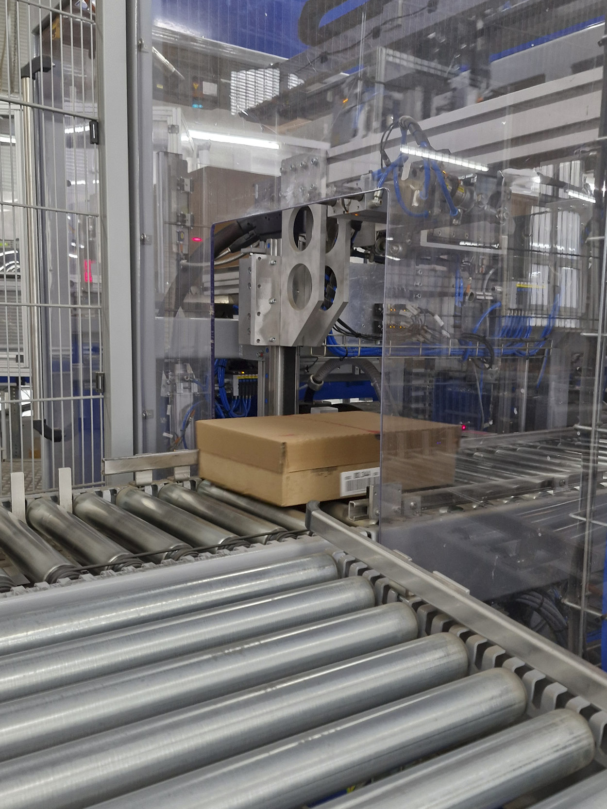 Die Maschine misst die Füllhöhe und perforiert den Karton-Rand zum Umklappen.
