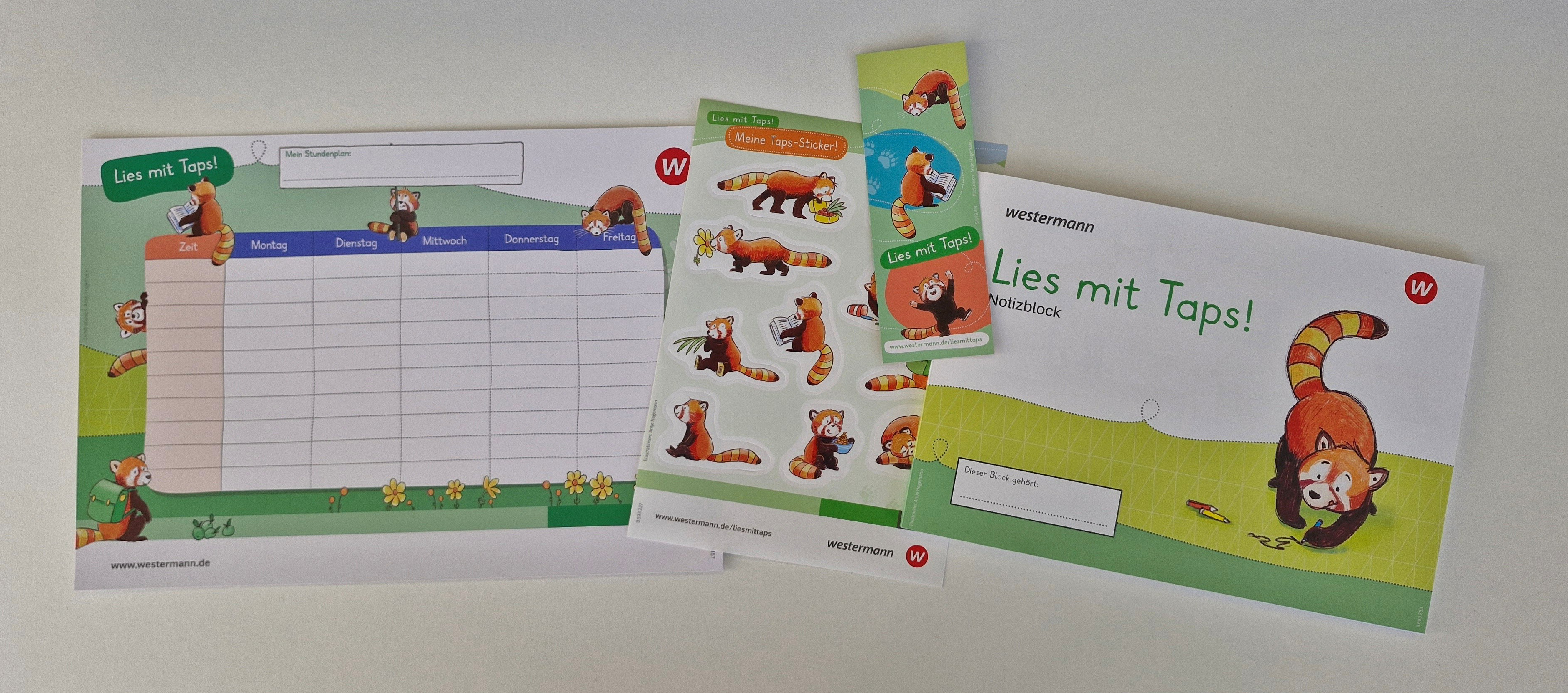 Wenn ihr euch für die Werbematerialien zu den "Lies mit Taps!"-Heften begeistern könnt, habt ihr folgende Möglichkeiten, welche zu erhalten: