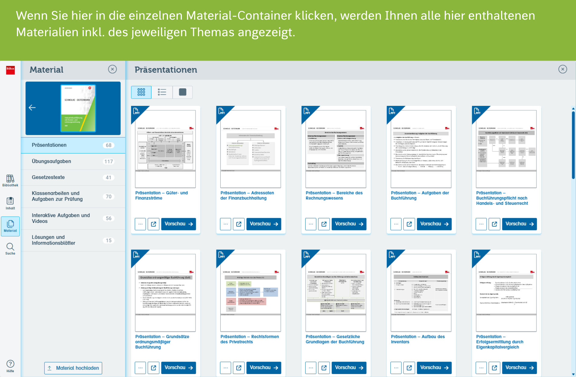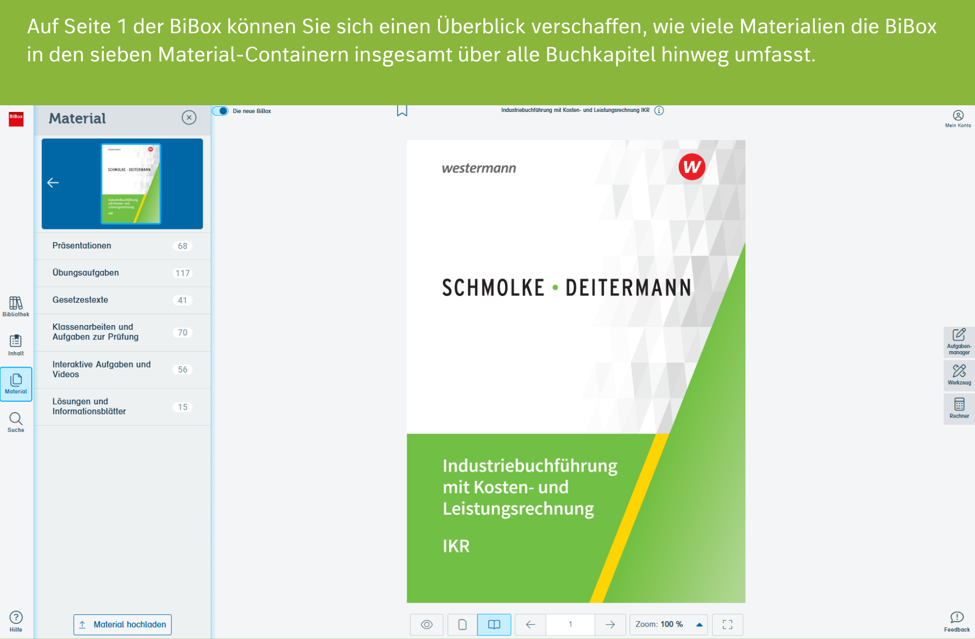 Der hybride Unterricht kombiniert das Lernen mit dem haptischen Buch und dem E-Book inklusive digitaler Tools und Zusatzmaterialien. Diese Kombination macht den Unterricht besonders effektiv und sorgt für einen optimalen Lerneffekt.Zu allen Kapiteln des Buches enthält die BiBox „Industriebuchführung“ abwechslungsreiche Zusatzmaterialien bereit.