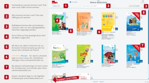 Infografik Im Medienregal sehen Sie alle Lehrwerke, auf die Sie Zugriff haben. Das können selbst erworbene Lizenzen sein oder Lizenzen, die von Ihrer Schule beschafft wurden.