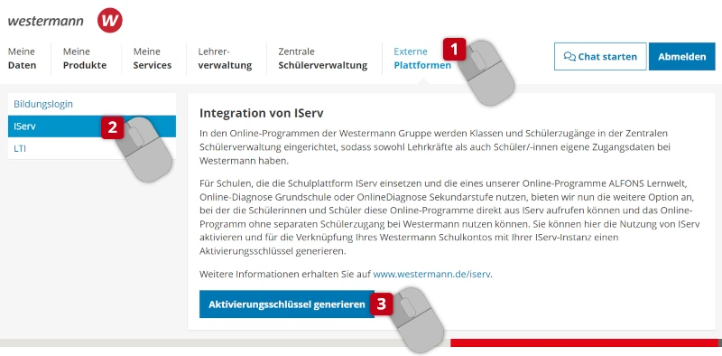 - Sie benötigen einen Aktivierungsschlüssel, um IServ und die digitalen Angebote von Westermann zu verknüpfen.