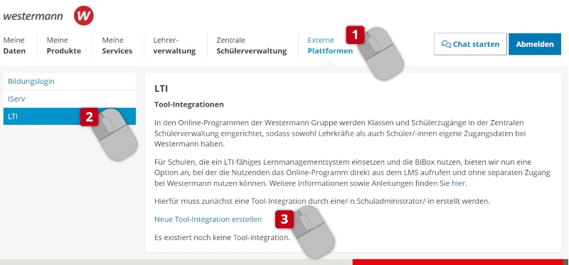- Sie benötigen eine "Tool-Integration" zur Verbindung der BiBox mit LTI.
