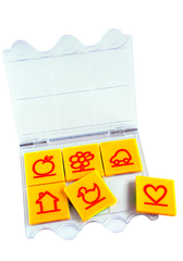 Wenn das zum oberen Aufgabenbild passende untere Lösungsbild gefunden ist, wird das Plättchen auf dem unteren Bild abgelegt usw.